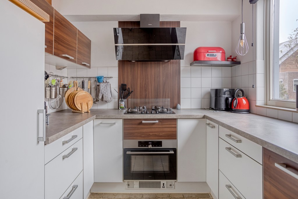 Je komt binnen in een lichte hal met meterkast, modern toilet met fontein en de trap naar boven. De tuingerichte woonkamer is heerlijk ruim en heeft een handige provisiekast. Aan de voorzijde bevindt zich de open keuken in U-opstelling, voorzien van diverse inbouwapparaten — perfect voor wie graag kookt én gezelligheid in de keuken waardeert.