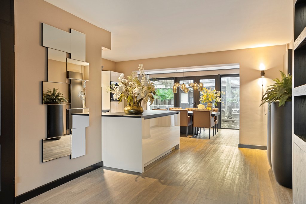 Via de entree/hal met meterkast en toilet met fontein betreed je de woning en voel je direct de lichte, ruime sfeer van de woonkamer. Deze uitgebouwde leefruimte beschikt over een grote raampartij aan de tuinzijde wat het geheel nog ruimtelijker maakt. De open keuken is in 2022 voorzien van een moderne inbouwkeuken in een U-opstelling. Deze moderne keuken beschikt over zeer veel inbouwapparatuur waaronder een inductie kookplaat, vaatwasser en quooker.