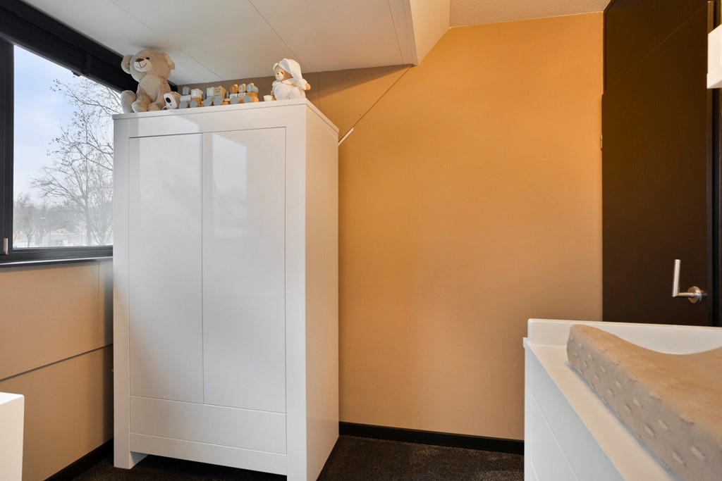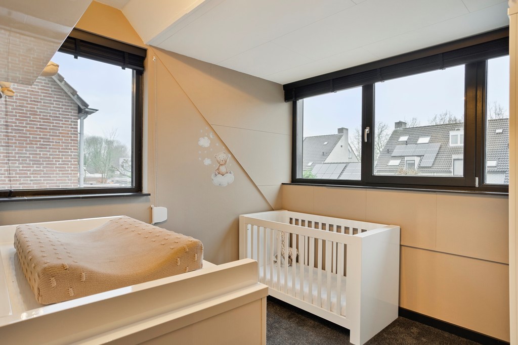 Op de eerste verdieping bevinden zich drie slaapkamers en een moderne badkamer. De grote slaapkamer is voorzien van een riante inloopkast – een luxe die je niet snel elders vindt.